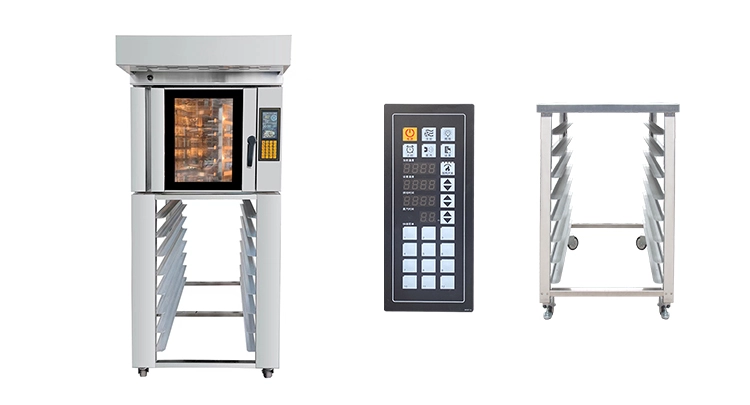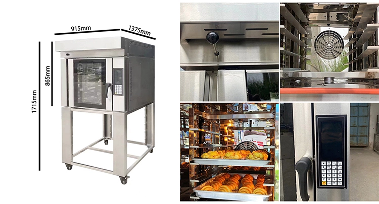 One of the standout features of the mini hot air rotary convection oven is its compact size. Unlike traditional large ovens that take up significant space, this electric rotating rack oven is designed to fit seamlessly into smaller kitchens, bakeries, or even food trucks. Despite its small footprint, it boasts an impressive baking capacity which can hold 5 trays of 400*600mm (15.75*23.6 inch), making it ideal for businesses that need to produce large quantities of baked goods without the luxury of ample space.