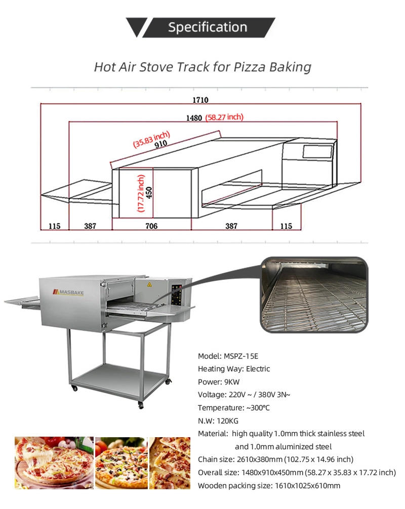 Masbake 10 Inch Industrial Electric Conveyor Belt Pizza Baking Oven Bakery Oven Equipment