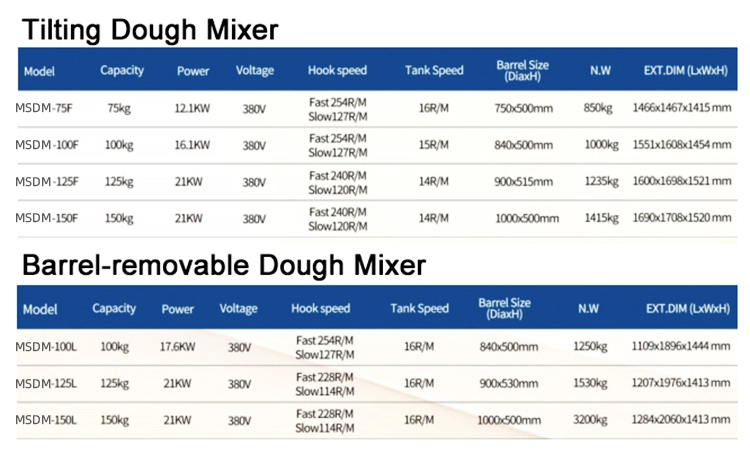 Main Features of Barrel-removable 125KG Bread Dough Spiral Mixer Machine