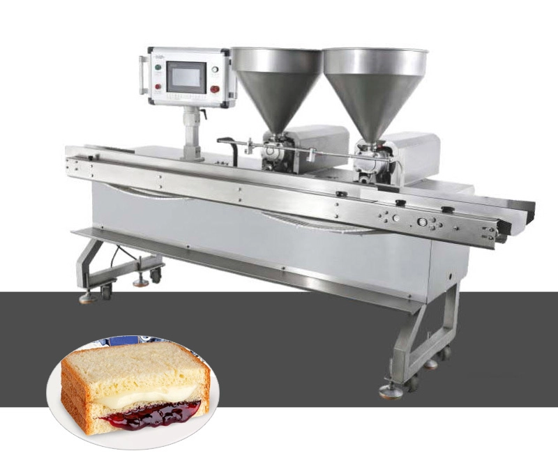 Automatically position base toast and spreading jam, butter, cream etc perfectly on the top, then stack a top-layer toast covering on it, making Two-layer Toast Bread Base with One Layer of Filling.