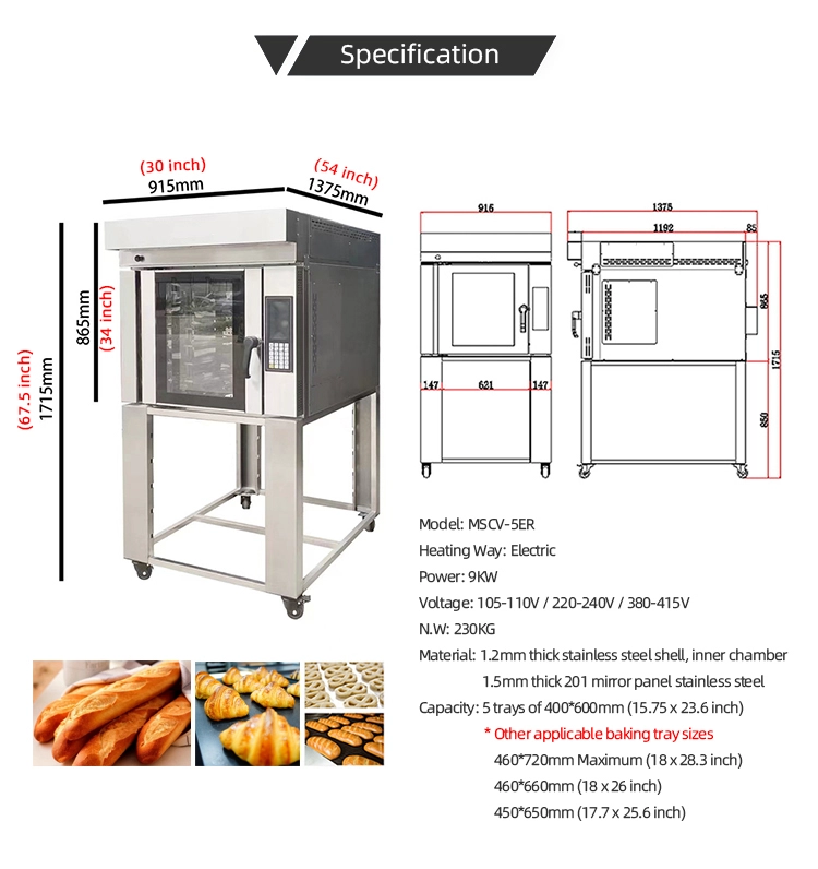 - Capacity: 5 trays of 400*600mm (15.75 x 23.6 inch), * Other applicable baking tray sizes like 460*720mm Maximum (18 x 28.3 inch), 460*660mm (18 x 26 inch), 450*650mm (17.7 x 25.6 inch)